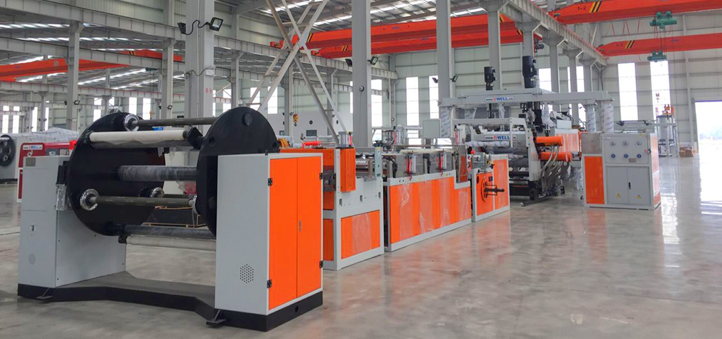 PET單螺桿(結(jié)晶干燥)、APETG、PETG、CPET 單層及多層共擠片材生產(chǎn)線是目前國內(nèi)技術(shù)先進、工藝成熟、設(shè)備穩(wěn)定的片材生產(chǎn)線之一,與國內(nèi)同類設(shè)備相比,綜合效能提高30%; 只需要結(jié)晶不需要干燥,是金韋爾公司新研制的高品質(zhì)PET片材機組,其優(yōu)點:低能耗、工藝簡單、設(shè)備使用維護方便等特點。